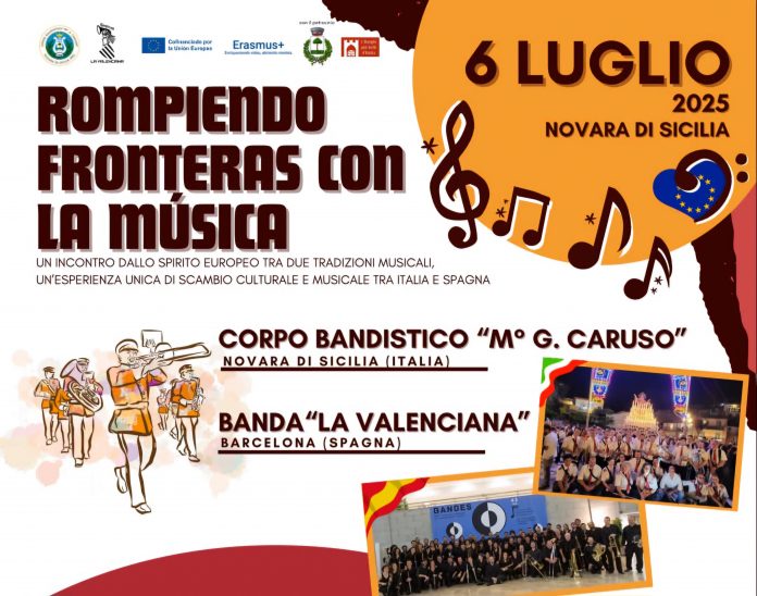 Un evento straordinario nato nell’ambito del progetto europeo Erasmus+, organizzato dal Corpo Bandistico “M° G. Caruso” con il patrocinio del Comune di Novara di Sicilia, porterà nel cuore del borgo musicisti provenienti dalla Spagna per vivere insieme ai colleghi novaresi un’esperienza unica di scambio culturale.