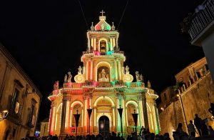 Nel solco della centenaria tradizione, sono iniziati giovedì i festeggiamenti che Palazzolo Acreide, meravigliosa città barocca del siracusano, tributa al patrono S. Paolo Apostolo, con l’accensione musicale dell’artistica illuminazione della del prospetto della Basilica, i cui colori si sono incantevolmente fusi, in un’atmosfera da Mille e una notte, con quelli dei fuochi d’artificio, che scendevano dal cielo stellato.