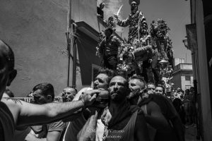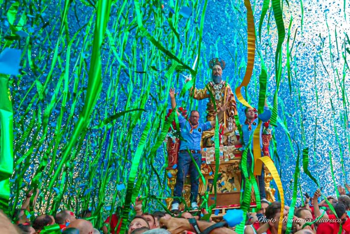 In quel momento il fragore sarà assordante per le migliaia di fuochi d’artificio, le raffiche di “nzareddi”, i nastri colorati sparati in aria dalla facciata, lo scampanio a festa delle campane e la musica delle bande musicali che accorreranno.