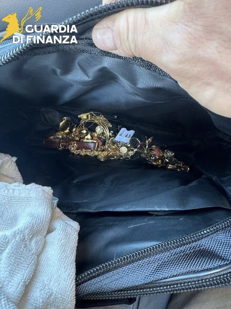 Scattato il controllo, i militari operanti hanno rinvenuto all’interno della borsa gioielli, orologi, monili e altri oggetti d’oro per un valore complessivo di circa 40 mila euro, appena sottratti a una coppia di anziani italiani, che, raggiunta, ha chiarito la dinamica dei fatti.