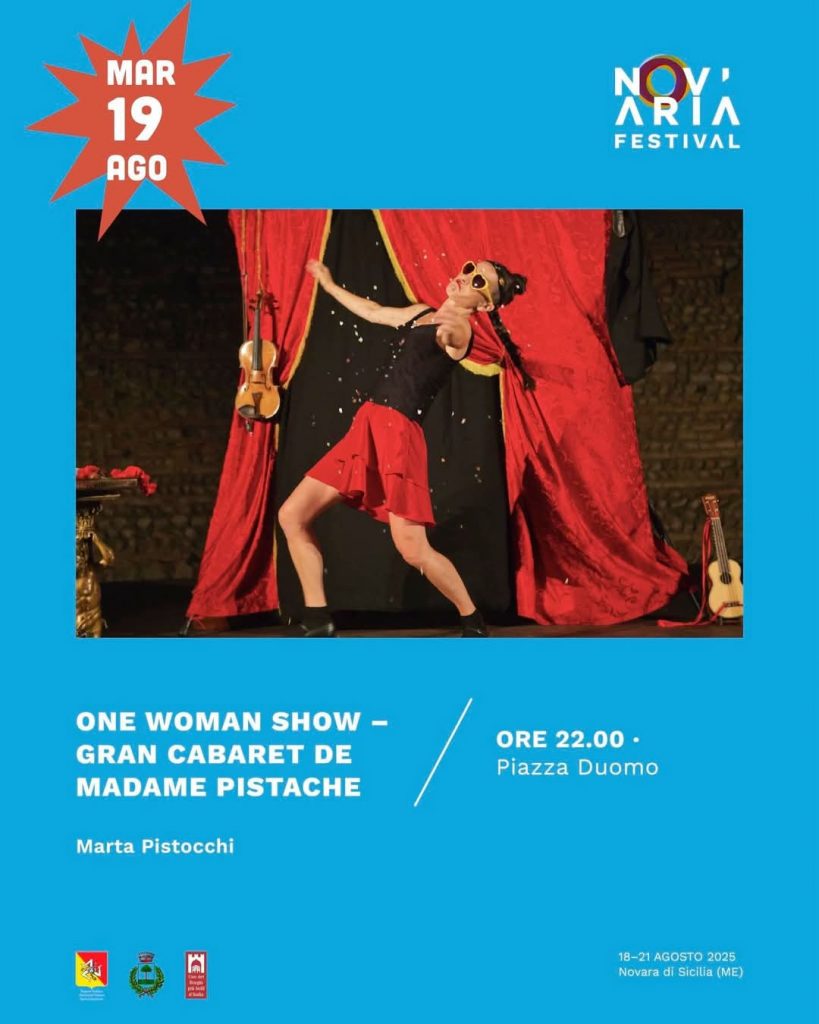 Stamattina in piazzetta Furnari si è tenuto un partecipato Laboratorio Culinario di Turtò, oltre al tanto atteso corso accelerato di Gallo-Italico. Si prosegue in serata, alle 22.00 in piazza Duomo, un vero One Woman Show ovvero il “Gran Cabaret di Madame Pistache”, Comedy show musicale di e con Marta Pistocchi per la regia di Claudio Cremonesi.