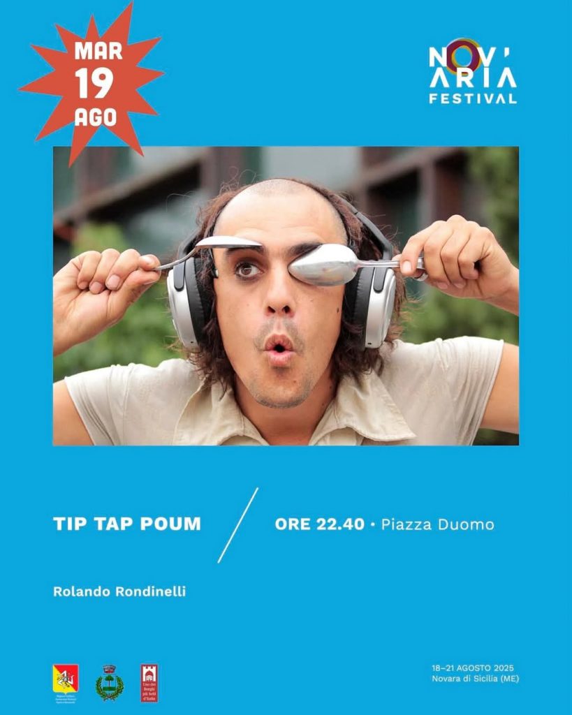 Chiusura alle 22.40 con “Tip Tap poum”, teatro fisico, percussioni, di e con Rolando Rondinelli, uno spettacolo musicale di teatro gestuale e tip tap, per tutte le età. Un personaggio eccentrico, scarpe da tip tap, pentole, cucchiai, piattini e alcuni elementi sonori deliranti trasformano lo spazio in un concerto teatrale, un’orchestra molto particolare e autentiche ondate di risate. Un personaggio che non potrete smettere di guardare dall’inizio alla fine. Uno spettacolo innovativo e interattivo, senza parole, senza copione, fresco e spontaneo.