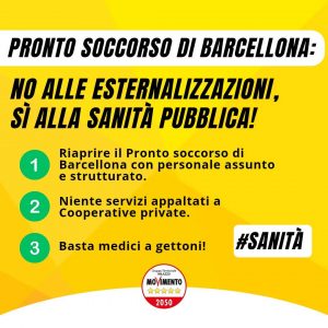 Il Gruppo Territoriale del Movimento 5 Stelle di Milazzo interviene sulla questione del Pronto Soccorso dell’Ospedale di Barcellona Pozzo di Gotto: “Abbiamo letto con grande preoccupazione l’articolo pubblicato mercoledì dalla Gazzetta del Sud, in cui si ipotizza l’esternalizzazione dei servizi come soluzione per riaprirlo, ancora una volta si tenta di curare un’emergenza strutturale con soluzioni temporanee e scorciatoie, tra l’altro a spese dei contribuenti, che minano la qualità e l’equità del sistema sanitario pubblico.”