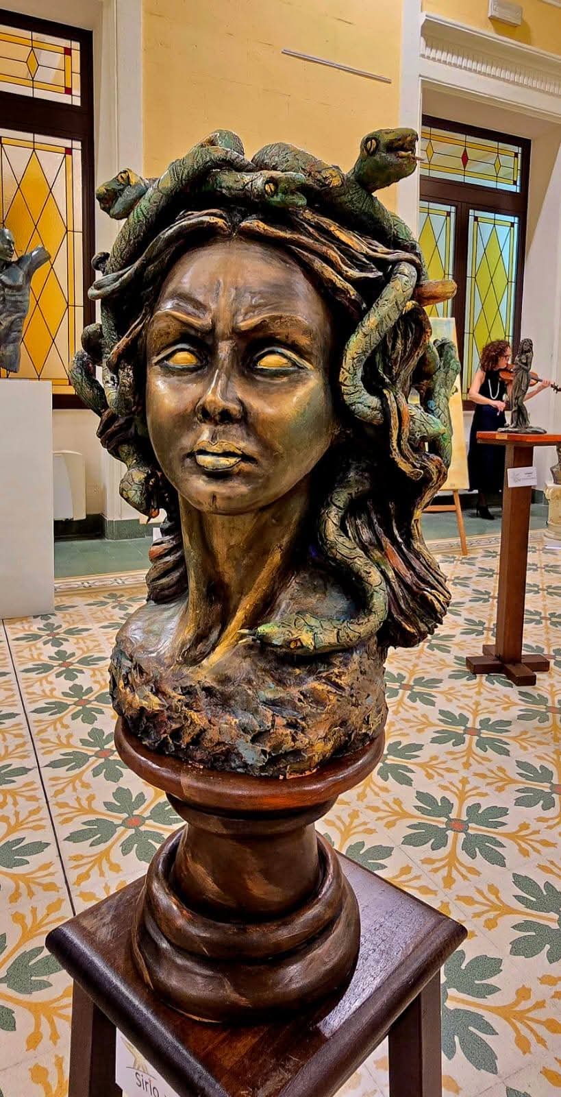 Presenti in sala anche alcune figure di rilievo quali la Critica d’Arte Sonia Demurtas e il Gallerista Francesco Logoteta. Le opere di Elvira Sirio dalla pittura su tela di juta riproducono, reinterpretandole, le sculture dell’antica Grecia, in primis i Bronzi di Riace, rappresentano un viaggio di riscatto del Mare Nostrum dalla tristezza della storia, alla riscoperta delle radici culturali magno-greche e classiche del territorio calabrese. Artisticamente si costituiscono come un dialogo ben riuscito tra archeologia e l’arte contemporanea. I lavori esposti nella Sala Boccioni hanno attratto il pubblico e destato vivo interesse.