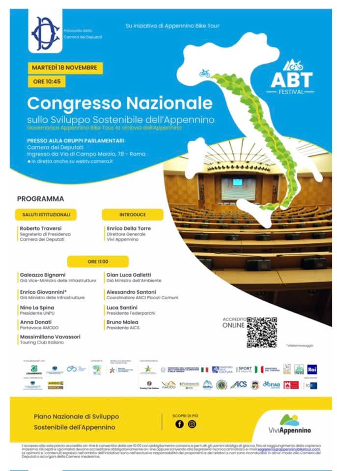 Martedì, 18 novembre 2025, si celebrerà il primo Congresso Nazionale sullo Sviluppo Sostenibile dell’Appennino che si terrà a Roma  presso la Camera dei Deputati – Aula dei Gruppi Parlamentari.