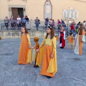 A conclusione dei “Laboratori Medievali” rivolti ai bambini dai 6 ai 13 anni, curato dalla Maestra Giusy De Pasquale, coreografa e componente dell’ Associazione “Antiche Torri”, si è snodato per le Vie del Centro luciese, il Corteo Medievale Junior. Partito dal Chiostro del Sacro Cuore, il Corteo è arrivato poi in Piazza Bando, davanti al Palazzo Basile-Vasari.