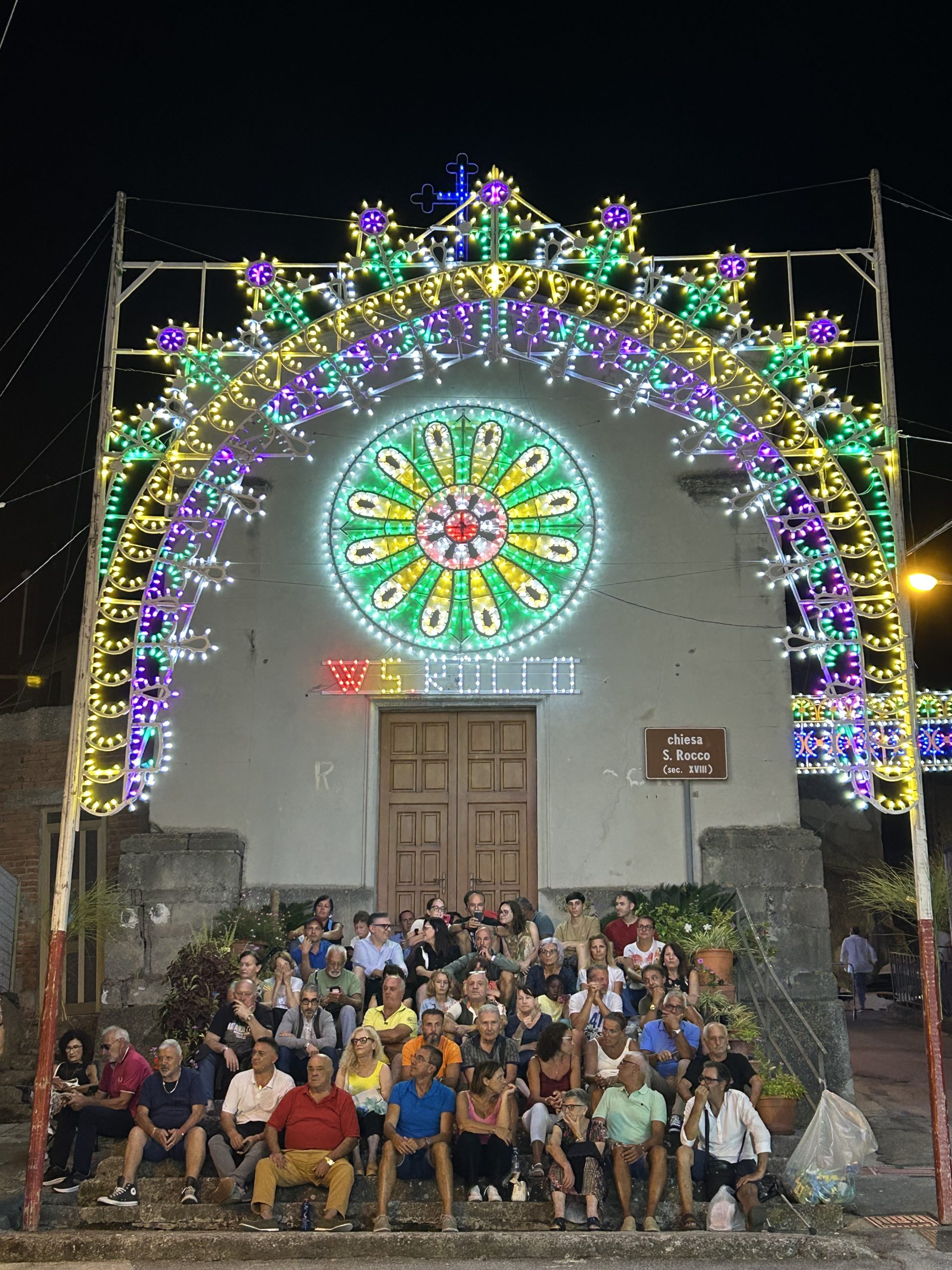 Chiusi a San Pier Niceto i festeggiamenti in onore di S. Rocco, nella gremita Piazza antistante la sua chiesetta, dominante la valle del torrente Niceto, sulla cui opposta estremità le luci notturne di Monforte S. Giorgio.