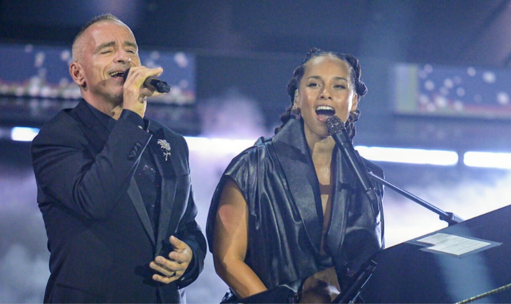 Tra abiti di cristallo e dediche strazianti, Eros e Alicia Keys regalano un momento di storia.