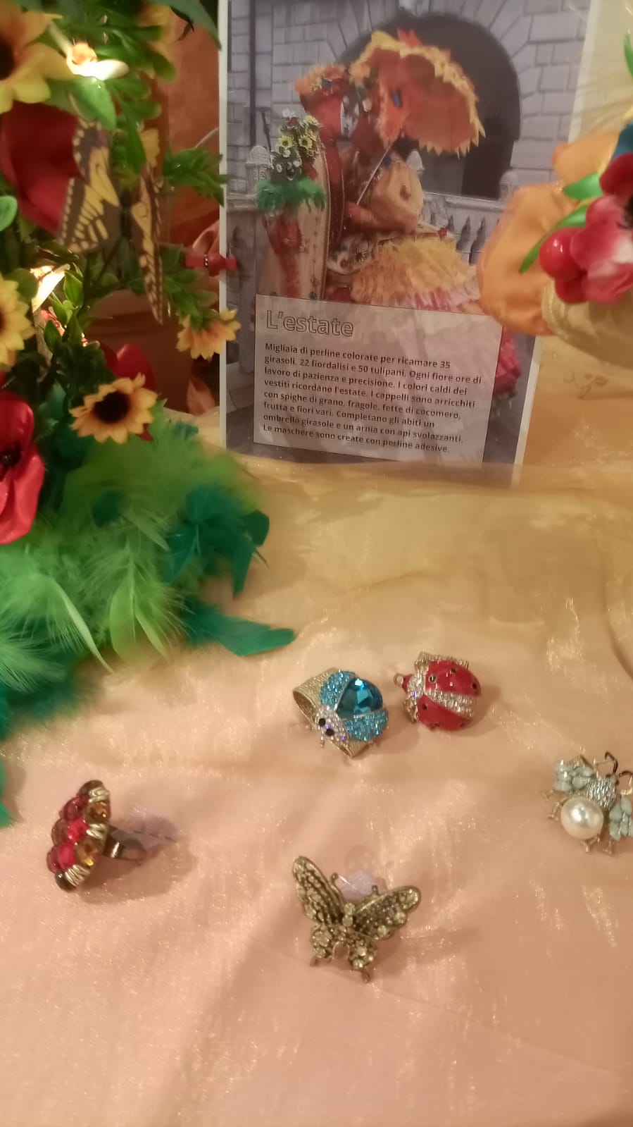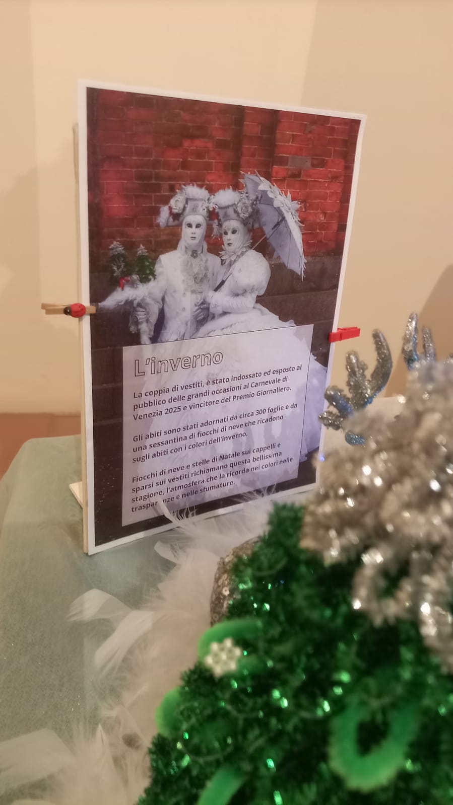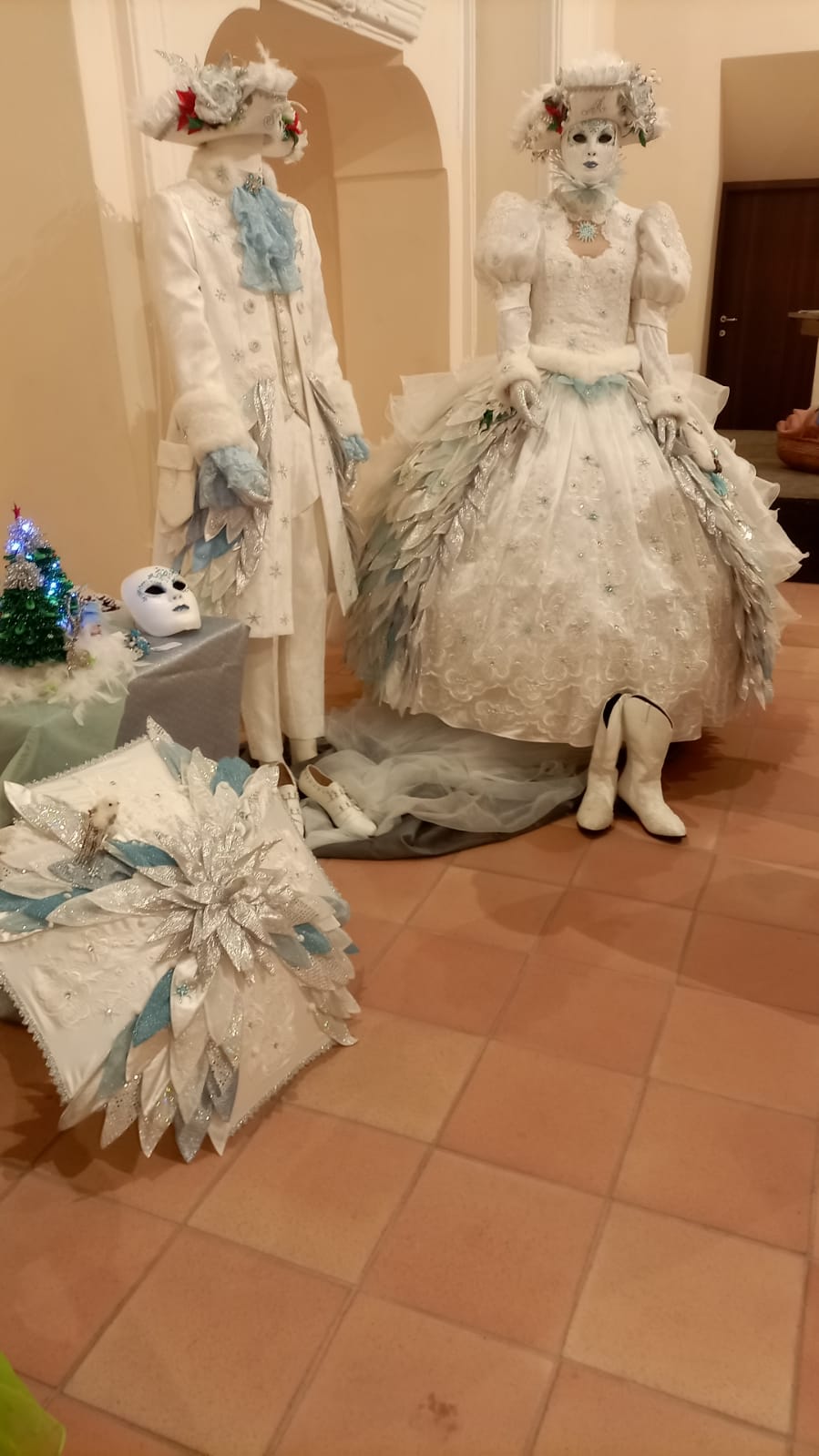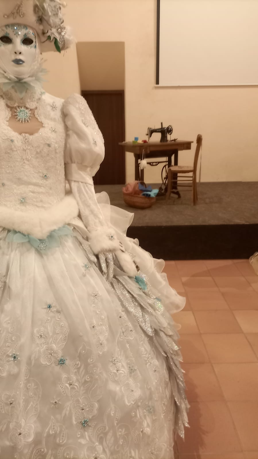 Una serie di splendidi abiti artigianali in stile settecentesco, che con i loro colori e con le loro fogge ci portano immediatamente con la fantasia, fra i Calli di Venezia, nelle magiche e romantiche serate del suo famoso Carnevale.