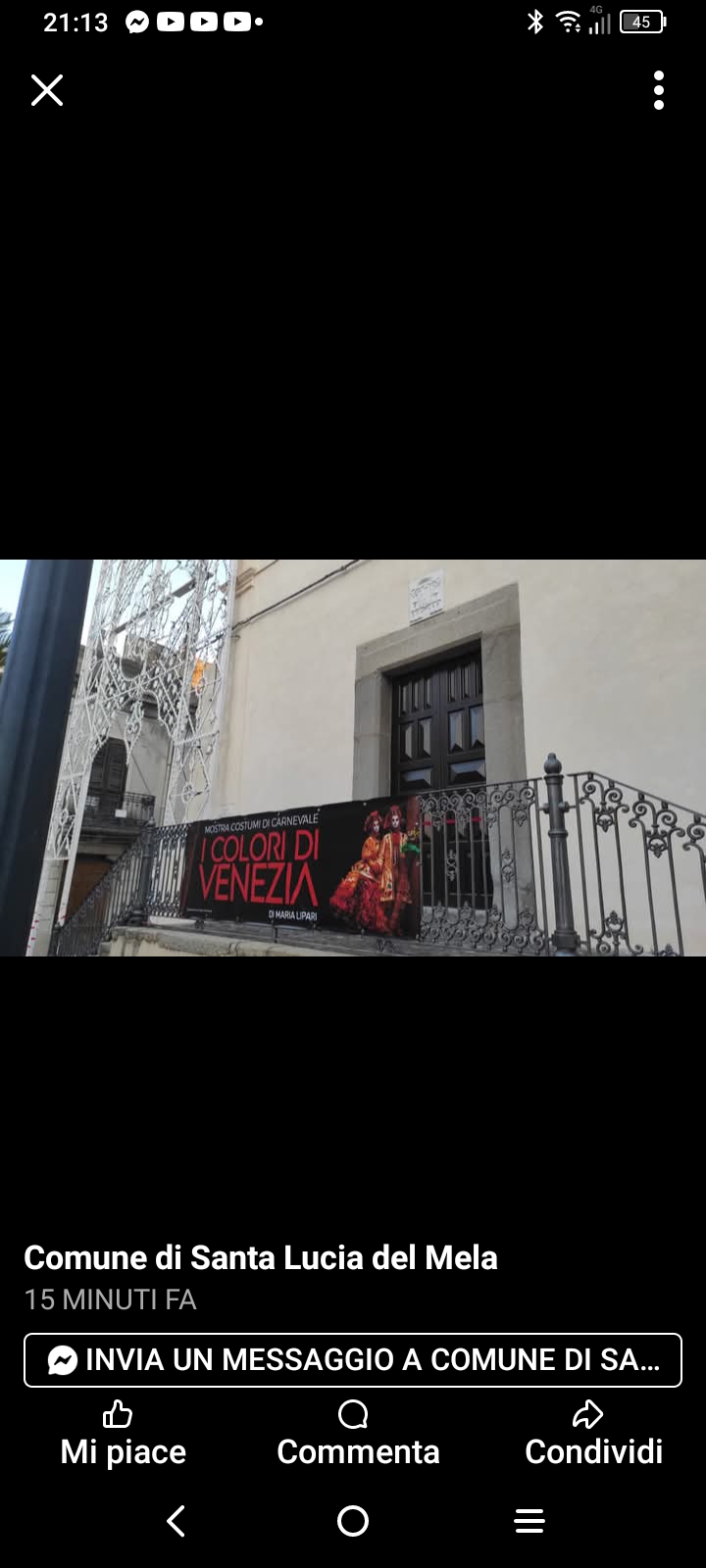 Giorno 2 agosto, con il classico taglio del nastro, è stata inaugurata la mostra: “I colori di Venezia” Presso la ex Chiesa Santa Maria dell’Arco, in Piazza Milite Ignoto di Santa Lucia del Mela, fino a giorno 9, è visitabile l’esposizione degli splendidi costumi ideati e creati con rara maestria dalla luciese Maria Lipari.