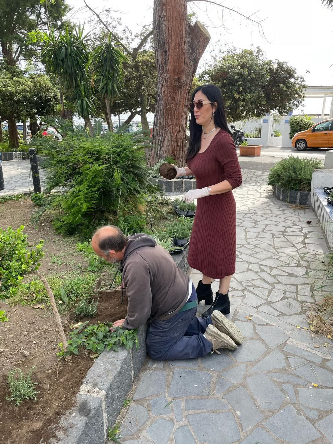Santa Marina Salina si colora di verde, piante di rosmarino per abbellire la villetta comunale.