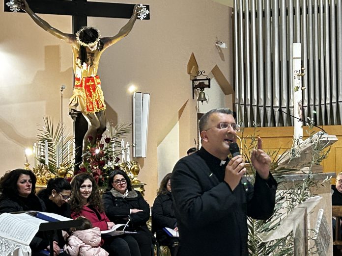 La liturgia del Triduo Pasquale, con i suoi “canti propri”, è stato il tema della catechesi “Dalla Cenere al Fuoco della Pasqua”, introduttiva della Settimana Santa, che P. Nino Cavallaro ha tenuto Lunedì nella sua parrocchia di Saponara Marittima, gremita di fedeli.