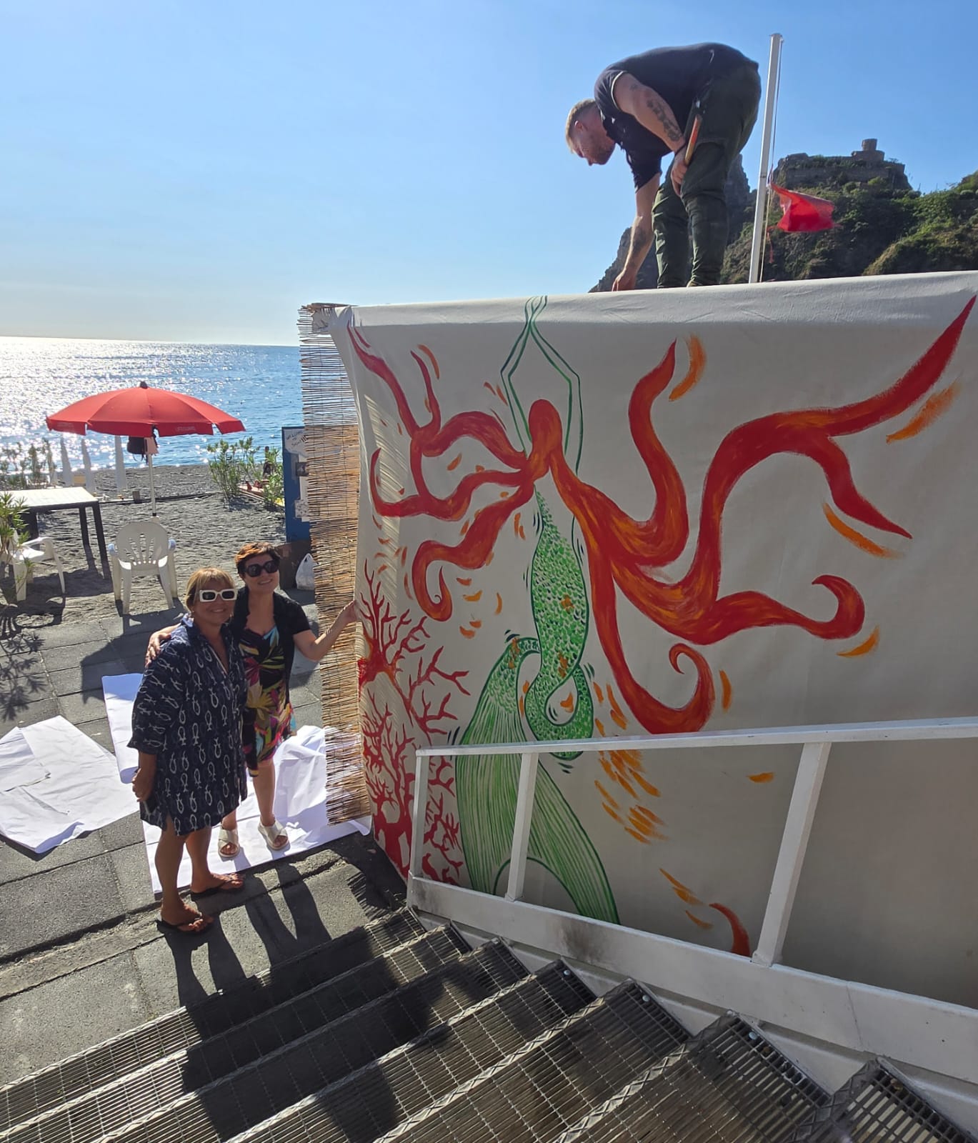 Il mare di Sant’Alessio, a due passi da Taormina, e il suggestivo incantato Castello, sono stati la cornice per la nuova opera dell’artista barcellonese Angela Saja: l’installazione “Salviamo il Mare e le Creature Marine” collocata presso l’elegante Elihotel di Sant’Alessio sul mare.
