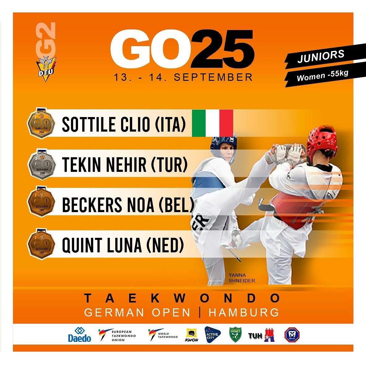 Buona anche la prova di Elena Fazio, capace di imporsi con sicurezza nel match d’apertura. La sua corsa si è fermata al secondo turno contro la tedesca Dina Kamandi, atleta di valore e seconda del ranking di gara, ma la giovane siciliana ha saputo tenere il campo con determinazione. Più complicato invece il percorso di Ninitto Perroni, ancora in difficoltà nel confronto con avversari più strutturati fisicamente nella nuova categoria dei 45 chili juniores, e di Elison Russo, penalizzato da un affaticamento muscolare che ne ha limitato il rendimento.