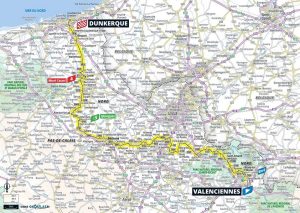 Il percorso si sviluppa ancora nell’Alta Francia, terra di frontiera e di profondi contrasti paesaggistici, tra la dolcezza delle campagne fiamminghe e la rudezza del clima che domina il nord della regione. La partenza è da Valenciennes, antica città mineraria non lontana dal confine belga. Dopo pochi chilometri, il gruppo attraversa un territorio dal fascino discreto delle Fiandre francesi, fatto di piccoli villaggi, chiesette in mattoni, stradine alberate e campi aperti, spazzati di frequente da raffiche trasversali. Ed è proprio questa l’incognita più grande della giornata, il vento laterale, che potrebbe innescare ventagli e frazionare il gruppo, soprattutto nella seconda parte della tappa quando la strada si avvicina al mare. Per quanto il tracciato sembri favorevole a una volata di gruppo, le squadre dovranno essere vigili fin dai primi segnali di cambiamento della direzione del vento. Le frazioni pianeggianti del nord, lo sappiamo, non sono mai realmente tranquille. L’unica vera asperità della giornata è rappresentata dallo strappo del Mont Cassel, superato poco dopo 140 km. Non si tratta di una salita lunga o proibitiva, ma la sua posizione nel finale di tappa e la carreggiata ristretta potrebbero generare qualche accelerazione o un tentativo di fuga. Niente, però, che possa impensierire i migliori sprinter se il gruppo deciderà di controllare. L’arrivo è previsto a Dunkerque, città portuale e crocevia di storia europea. Qui, nella primavera del 1940, si svolse una delle operazioni più drammatiche e decisive della Seconda Guerra Mondiale. Oggi, però, sarà lo sprint a dominare la scena. Gli ultimi chilometri sono completamente pianeggianti, con carreggiata larga e visibilità ottima, l’ideale per i “treni” dei velocisti. Se il vento non avrà scombinato i piani, ci si attende un arrivo in volata con i migliori interpreti della specialità: Jasper Philipsen cercherà il riscatto dopo aver perso la maglia gialla nella seconda tappa, mentre Jonathan Milan avrà voglia di lasciarsi alle spalle la giornata complicata vissuta ieri tra nervosismo, scontri e imprevisti. Occhio anche a corridori come Sam Bennett, Kaden Groves e Biniam Girmay, sempre pronti a inserirsi nel caos degli ultimi 500 metri. Ma in caso di ventagli e gruppo spezzato, potrebbe toccare a corridori più completi, magari i “secondi velocisti” o i finisseur, approfittare di un arrivo a ranghi ristretti.