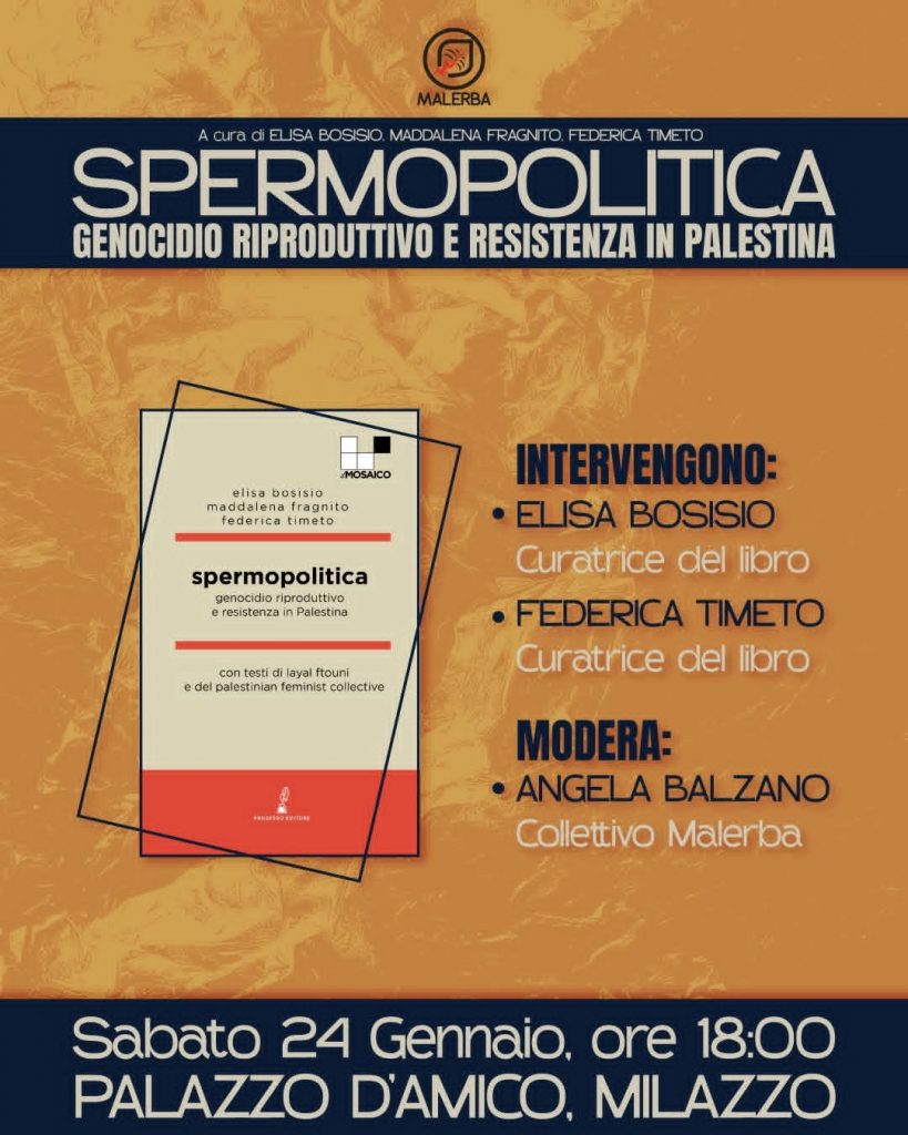 Il corpo, la riproduzione e il diritto al futuro diventano campo di battaglia. Sabato 24 gennaio, alle ore 18:00, la splendida cornice di Palazzo D’Amico ospiterà un incontro destinato a scuotere le coscienze e a ridefinire i confini della solidarietà internazionale: la presentazione del volume “Spermopolitica – Genocidio riproduttivo e resistenza in Palestina”.