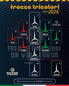 Pierluigi Raspa, classe 1985, è entrato a far parte delle Frecce Tricolori dopo una lunga e selettiva carriera nell’Aeronautica Militare. Oggi, da Capo Formazione, ha il compito più delicato. È il punto di riferimento per l’intera pattuglia. Ogni movimento, ogni virata, ogni sincronismo parte da lui. La sua guida non è solo tecnica, ma anche mentale e simbolica. Durante ogni esibizione, è lui a rappresentare la voce e il cuore della squadra.