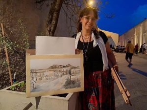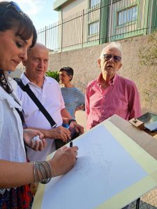 Il pomeriggio è stato arricchito infine, dalle estemporanea pittoriche di urban sketcher (artista che disegna sul posto, all’aperto o al chiuso, che documenta il mondo attraverso disegni in loco, le proprie esperienze e in tempo reale). Erano presenti anche studenti, bambini  e la pittrice Laura Marchese che ha raffigurato in sole due ore, il prospetto del quartiere oggetto di studio, utilizzando una cartolina di fine ’800.