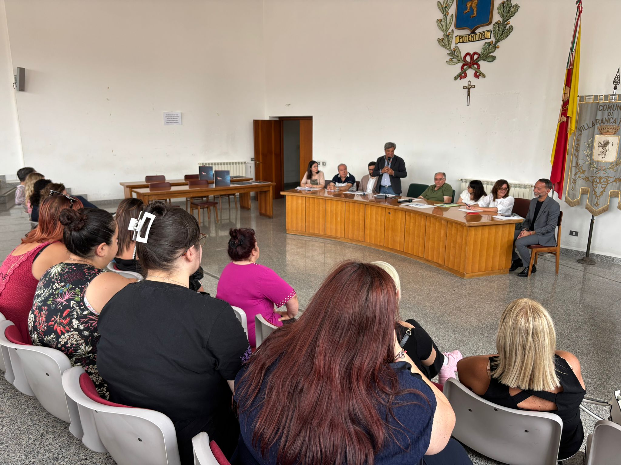L’iniziativa, che vede Villafranca Tirrena come Comune capofila, si è svolta alla presenza del Sindaco Cavallaro e dell’Assessore De Marco, in collaborazione con il Comune di Saponara, rappresentato dal Sindaco Giuseppe Merlino, e con il Comune di Rometta, rappresentato dall’Assessore ai Servizi Sociali Francesco Rizzo. L’evento ha registrato una forte partecipazione da parte di cittadini, operatori sociali ed enti del terzo settore. Presenti anche il Dott. Daniele Vasile del Centro per l’Impiego di Messina e Villafranca, e Giuseppe Trifilò, vicepresidente del Centro Studi e Ricerche Siapa ETS, partner tecnico del progetto.