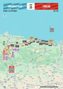 Il percorso misura 202,7 km e presenta un dislivello positivo complessivo di 3964 metri. La tappa è divisa nettamente in due parti. I primi 140 km saranno relativamente semplici, con tratti pianeggianti e qualche saliscendi, ma il vento laterale lungo la costa cantabrica potrebbe scompaginare le carte. Dal km 72, con la svolta verso